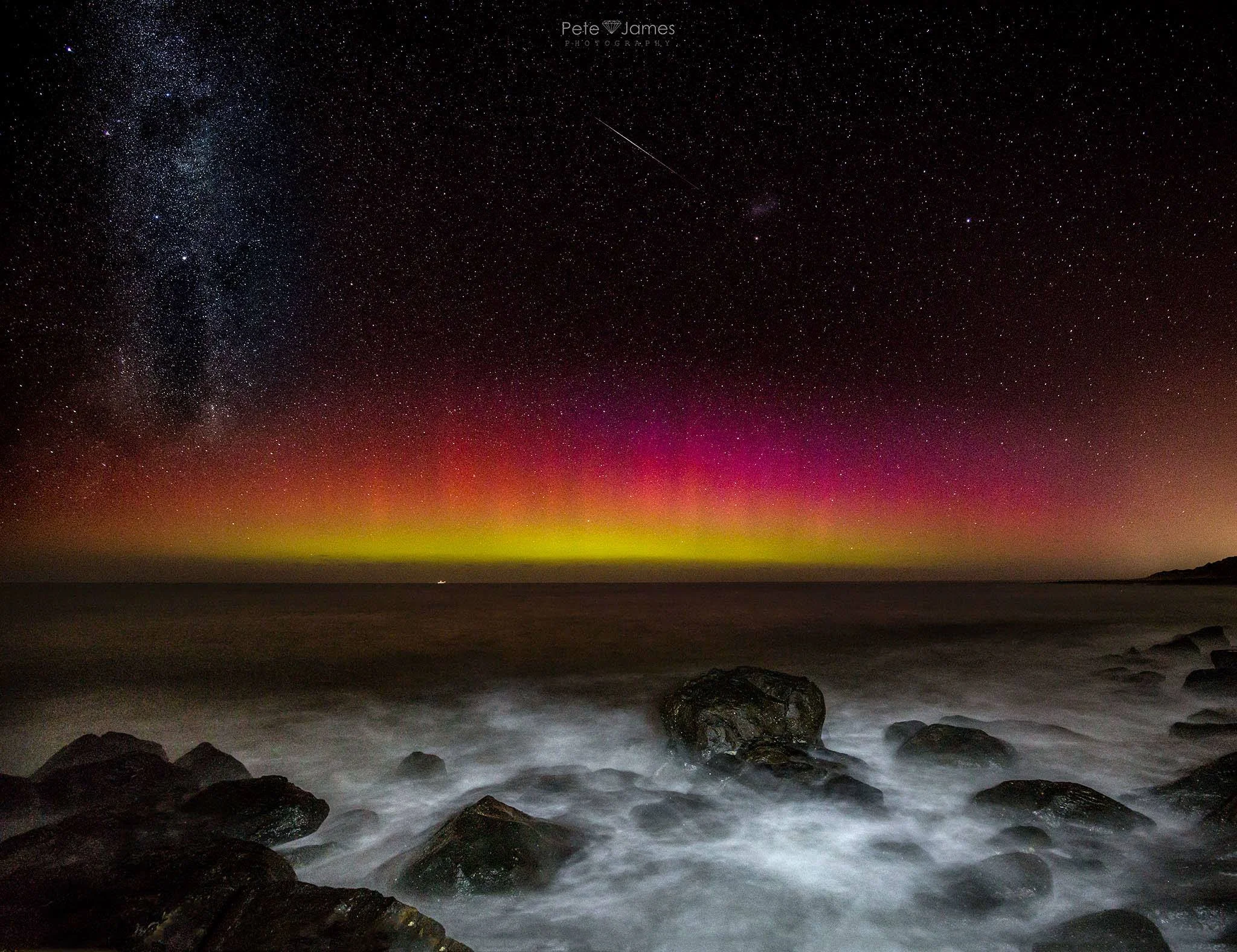 The Southern Aurora lights dancing on the horizon last night over Bass Strait.